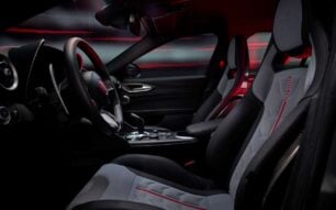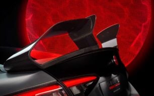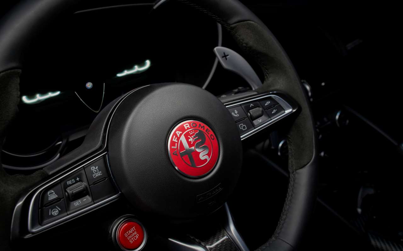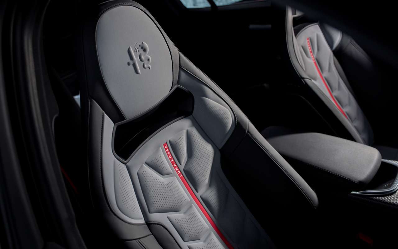 El nuevo paquete aerodinámico de fibra de carbono hace algo poco habitual en una berlina: genera una carga aerodinámica brutal sin estropear la elegancia del conjunto. La marca nos ha comentado si alcanzaras los 300 km/h con este modelo, el discreto aero kit nos daría 140 kilos de carga, algo que para que te hagas una idea, es la misma carga aerodinámica que ofrece un Giulia de serie pero multiplicada por 5.