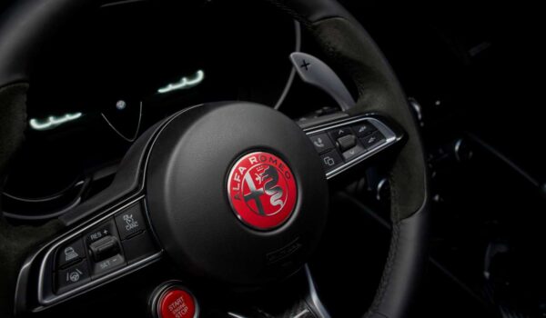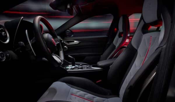 El nuevo paquete aerodinámico de fibra de carbono hace algo poco habitual en una berlina: genera una carga aerodinámica brutal sin estropear la elegancia del conjunto. La marca nos ha comentado si alcanzaras los 300 km/h con este modelo, el discreto aero kit nos daría 140 kilos de carga, algo que para que te hagas una idea, es la misma carga aerodinámica que ofrece un Giulia de serie pero multiplicada por 5.