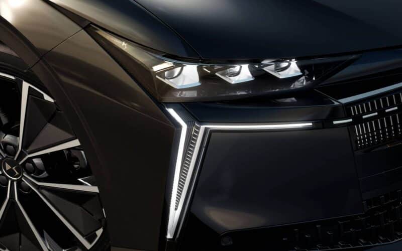 El DS N°4 llega con una silueta de 4,40 metros de largo y 1,87 metros de ancho exhibe líneas tensas y fluidas, con una imponente parrilla frontal negra enmarcada por una firma luminosa inspirada en los prototipos más vanguardistas de la marca. Esta firma lumínica, que conecta visualmente el paragolpes con el logo iluminado DS, aporta una identidad fuerte y tecnológica.