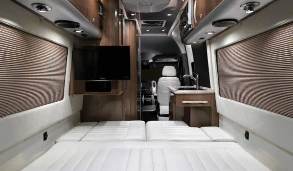 Ya en la parte trasera encontramos con un generoso sofá, que también se convierte en una cama, así como una pequeña cocina con todo lo necesario para preparar una buena comida para todos los ocupantes. Además, la Aistream Interstate dispone de un amplio equipamiento para mantener a sus pasajeros conectados gracias a una antena satélite y radio HD, además de la conectividad para los teléfonos móviles. Bajo el capó equipa un motor diesel V6 de 3.0 litros, mientras que de momento se desconoce el precio de este modelo.