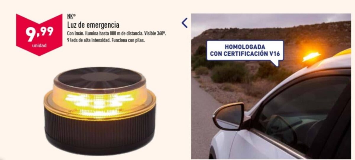 El producto comercializado por Aldi cuenta con un imán, ilumina hasta 800 m de distancia, es visible 360 grados y está compuesta por 9 diodos luminosos de alta intensidad.