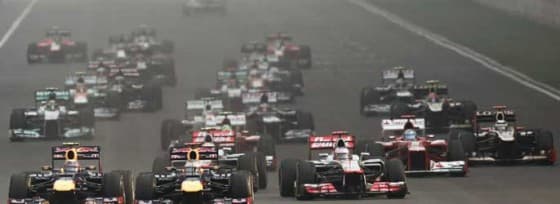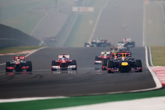 Aunque Vettel se ha llevado la victoria en el Buddh International Circuit, el guion que ha seguido la carrera ha sido más o menos el que pronosticó Fernando Alonso tras la clasificación de ayer. Desde la salida –limpia en las posiciones de cabeza-, el piloto español ha tratado de superar a los monoplazas que llevaba delante en su intento por alcanzar a su rival por el campeonato. En la primera curva, un buen trabajo de Massa ha permitido al asturiano centrarse únicamente en pugnar con los McLaren de Button y Hamilton, a los que ha adelantado con facilidad en apenas dos vueltas.
