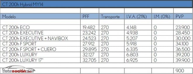 El Nuevo CT 200h dispone de numerosas mejoras como hemos destacado pero mantiene el mismo precio que su predecesor.