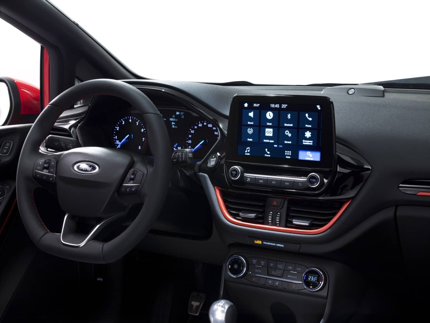En el interior se ha trabajado para conseguir una mejor impresión visual, especialmente ahora que el Ka+ debería cubrir el hueco de las versiones más sencillas y el Fiesta sube un escalón en precio. Según modelo podrán tener una pantalla de hasta ocho pulgadas, algo poco habitual en el segmento.