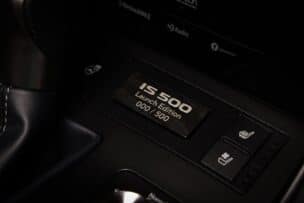En el interior, el IS 500 Launch Edition cuenta con la máxima expresión de la artesanía Takumi con equipamiento como los asientos deportivos delanteros y traseros tapizados en Ultrasuede® negro y gris, detalles en las puertas y consola central. Además, el volante forrado en cuero con calefacción recibe un exclusivo tratamiento de madera de fresno con el distintivo F SPORT Performance, y el interior estará equipado con un distintivo serializado Launch Edition para resaltar aún más la exclusividad del vehículo. Además, el medidor de instrumentación combinado F SPORT se ha actualizado con una animación de inicio exclusiva Launch Edition para diferenciar aún más este modelo del IS 500.