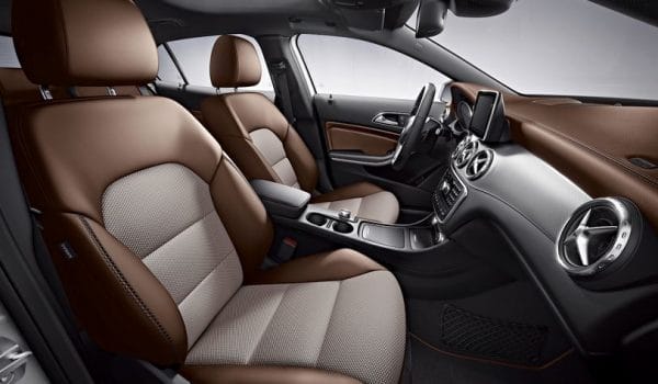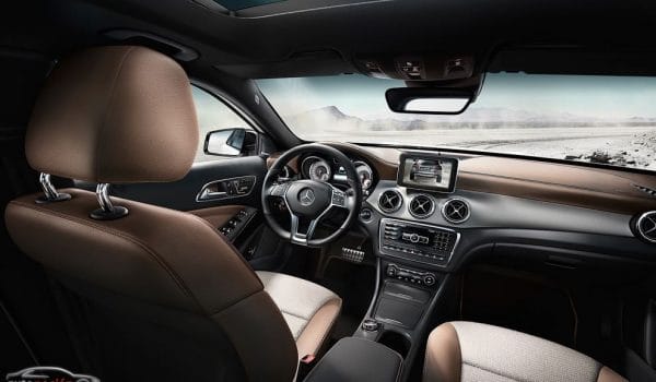En el interior, el GLA Edition 1 traerá cuero marrón y asientos deportivos, volante deportivo de tres radios forrado en cuero, pedales de acero inoxidable cepillado, detalles de aluminio y el paquete Luz y Visión.