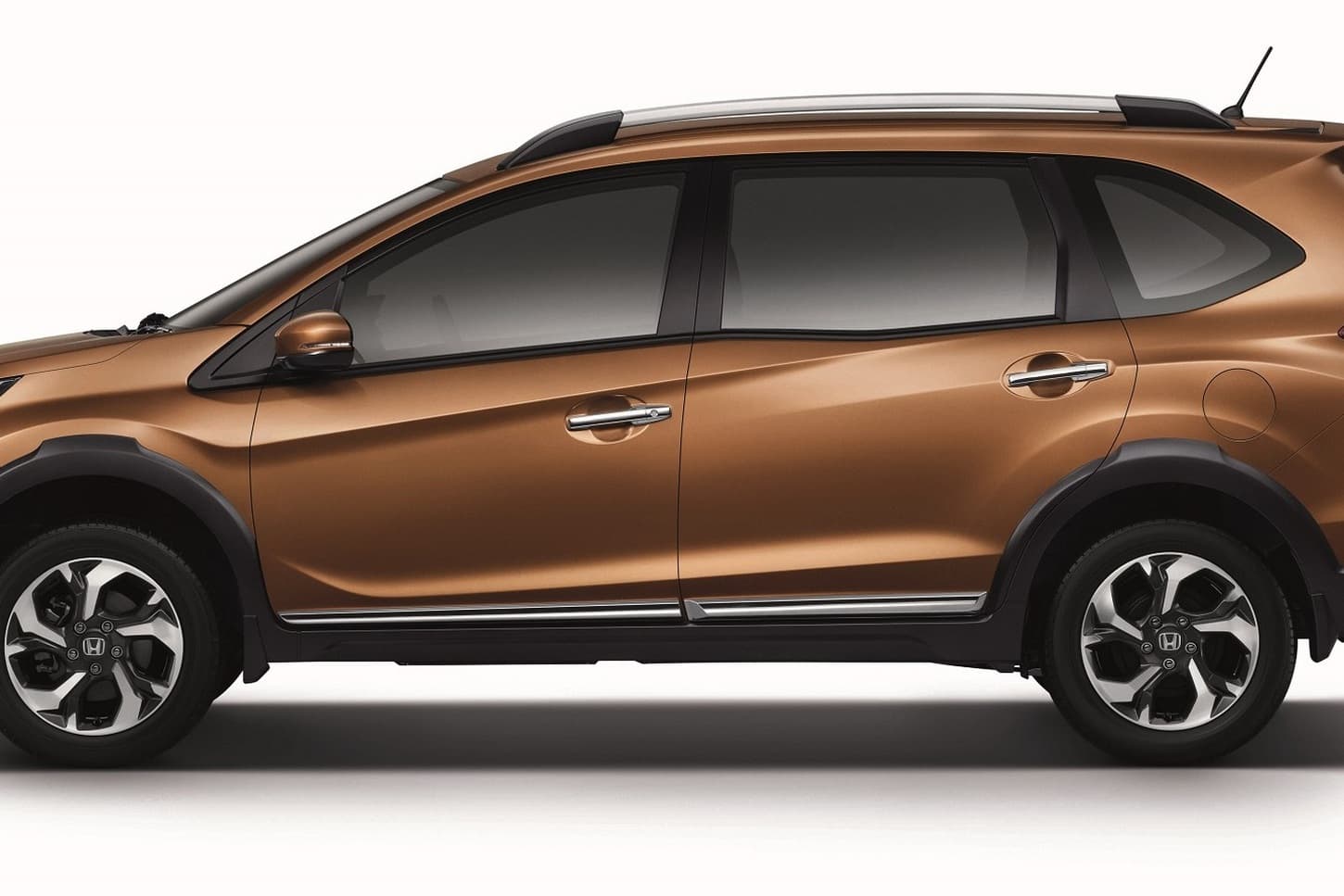 Con un diseño fresco y personal, el BR-V recurre al clásico maquillaje estético para conseguir aumentar la sensación de robustez. Integran molduras plásticas por todo el contorno de la carrocería, pasos de rueda ensanchados, protectores de bajos en símil aluminio, barras de techo y llantas de aleación específicas.