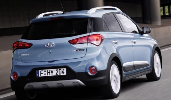 El i20 Active se reconoce en su exterior por las molduras plásticas en negro, pasos de rueda ensanchados, las llantas de aleación de 17 pulgadas exclusivas, la suspensión sobre-elevada en 20 mm, los protectores de bajos metálicos, las barras de techo y el difusor posterior específico.