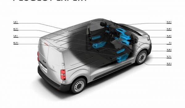 El volumen anunciado para el Expert podrá alcanzar los 6,6 metros cuadrados de la carrocería XL panelada con el sistema Moduwork que permite introducir objetos por debajo de la mampara (anula el asiento del copiloto). El peso máximo será de 1.400 kg.