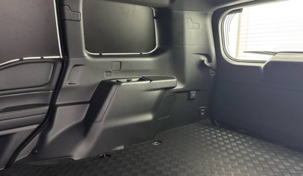 Este proceso incluye la eliminación de los asientos traseros, la instalación de paneles interiores de acero opacos y un mamparo metálico completa con rejilla superior.