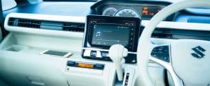 Como buen kei-car, el Wagon R conserva sus recortadas dimensiones que lo hacen muy manejable en ciudad y gracias a sus formas muy cuadradas, puede presumir de un amplio interior. Ahora el habitáculo tiene materiales más cuidados y un diseño más atractivo, incluyendo la ya habitual «tableta» en la consola central.