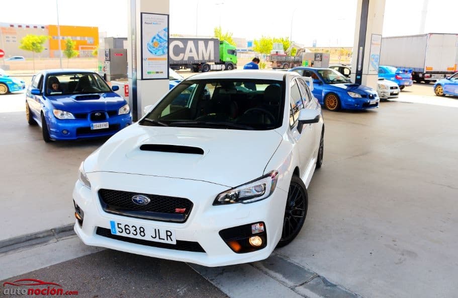 Aunque el azul rally predominaba, el resto de colores no desencajaban la curiosa estampa de ver decenas de vehículos acompañados de sus imponentes alerones rodeando la gasolinera como abejas la miel.