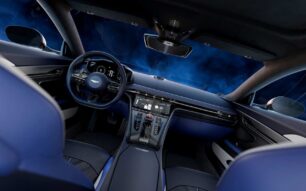 Entre los detalles exclusivos destacan el selector de modos de conducción anodizado en rojo, costuras y cinturones a juego, y la posibilidad de equipar asientos deportivos de fibra de carbono o sistema de sonido Bowers & Wilkins.