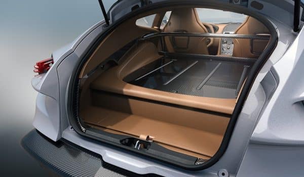 La principal seña del diseño de este modelo es su enorme techo panorámico con una leve caída hacia la zaga, lo que deja ver su marcado carácter deportivo. Tanto el frontal como la zaga permanecen casi idénticos al resto de creaciones de Zagato y Aston Martin, aunque de perfil podemos comprobar que la superficie acristalada es de mayor tamaño. Esto se traduce en un interior con mayor luminosidad, un espacio con un acabado exquisito que tiene como protagonistas el cuero y la fibra de carbono.