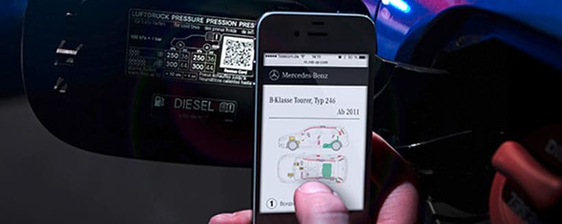 La hoja de rescate tiene varios formatos. Mientras algunos abogan por un formato A4 colocado en el parasol del asiento del conductor, en otros lados apuestan por un formato pegatina en forma de código QR. Los investigadores de accidentes han determinado que el lugar idóneo para la colocación del adhesivo es el pilar B del lado del copiloto y la tapa del depósito de la gasolina. (Lugares que por estadística, resultan dañados en raras ocasiones)