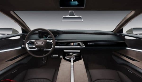 El conductor y los pasajeros disfrutan del espacio interior como si se tratara de una lujosa sala. La arquitectura interior del Audi prologue allroad destaca con su innovadora pantalla y por el concepto de funcionamiento. Toda la anchura del frontal del panel de instrumentos está diseñada para ser una superficie en la que se integran tres pantallas táctiles. Unos marcos de aluminio bordean las pantallas del conductor, colocadas a derecha e izquierda del volante. El pasajero del asiento delantero puede configurar las opciones del sistema de información y entretenimiento, utilizando una pantalla ancha completamente integrada en el panel de instrumentos. Y, después, este pasajero puede enviar su configuración a la pantalla derecha del conductor o al Audi virtual cockpit future, que está detrás del volante, mediante un movimiento de deslizamiento.