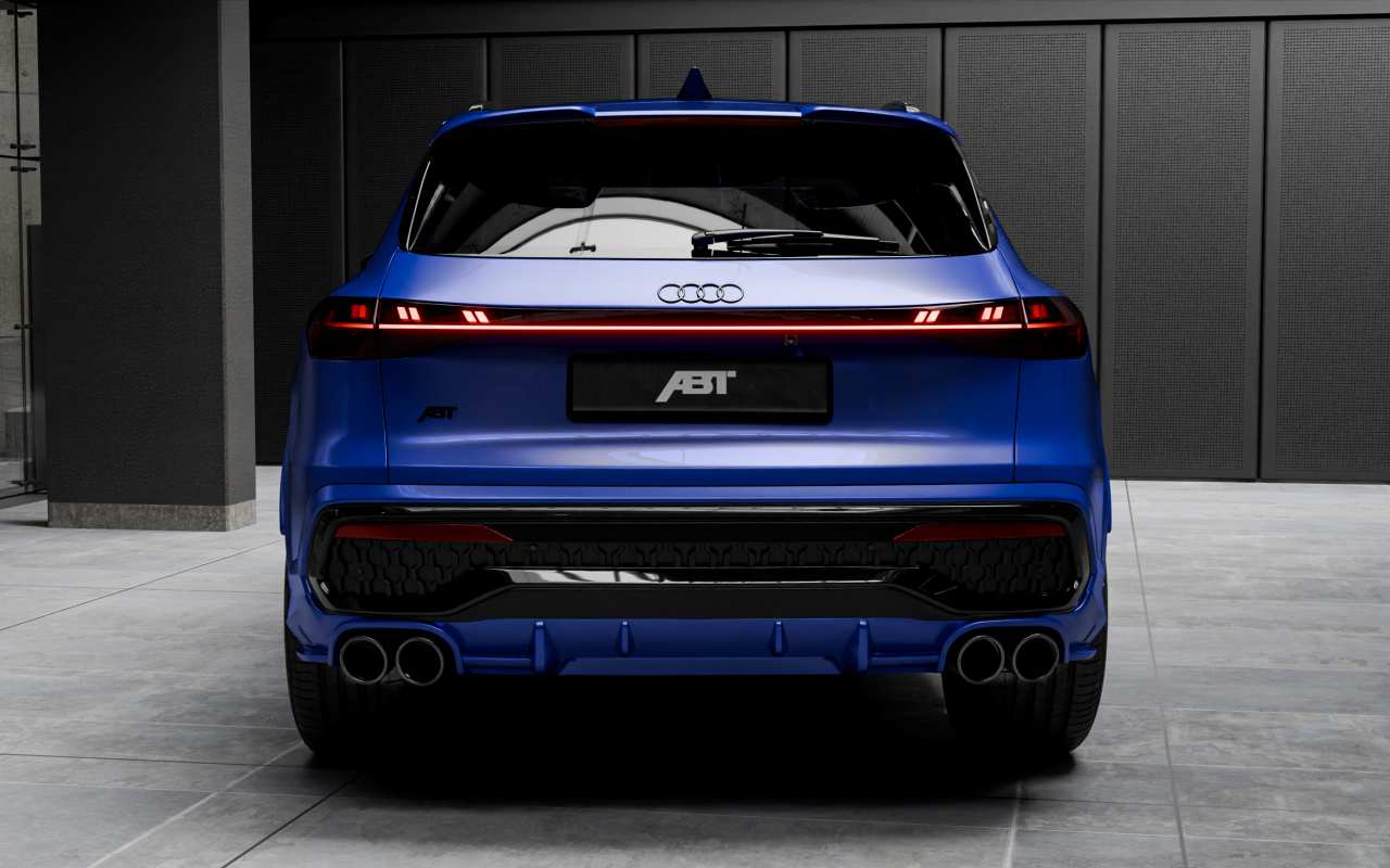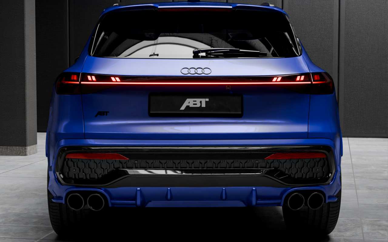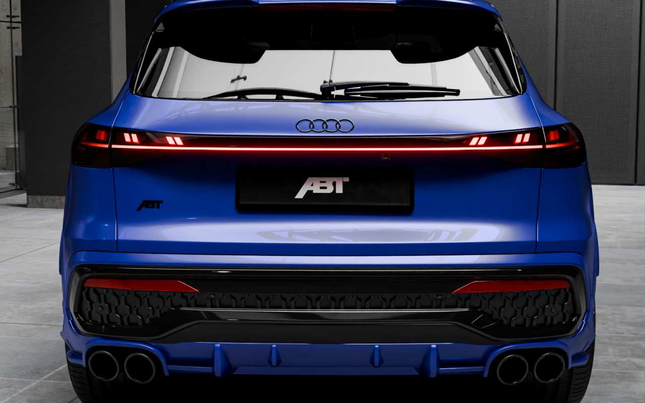 El nuevo kit aerodinámico ABT transforma por completo la estética del SQ5. Incluye un spoiler delantero, un difusor trasero con salidas de escape dobles en acero inoxidable mate de 102 mm, y un alerón trasero con detalles aerodinámicos.