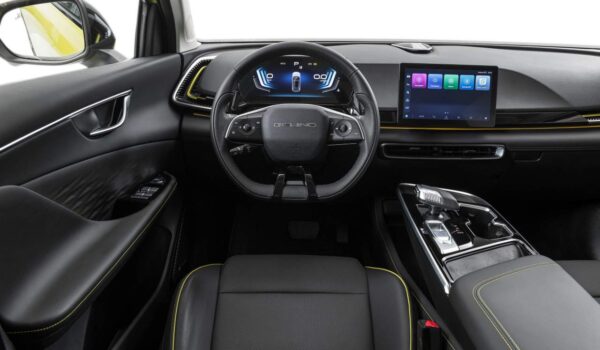 El interior también sorprende. Cuenta con cinco plazas y un amplio techo panorámico de 0,81 m², dos pantallas digitales (instrumentación y sistema multimedia), compatibilidad con Android Auto y Apple CarPlay, y elementos de confort como asientos calefactados y ventilados, tapicería de cuero ecológico, luz ambiental personalizable y cargador inalámbrico para smartphones.