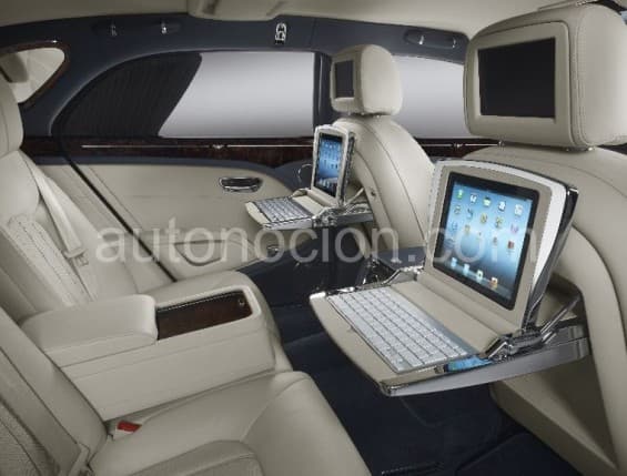 La Entertainment Specification incorpora las últimas novedades tecnológicas, como las mesas de picnic diseñadas para alojar un iPad y un teclado inalámbrico con el que podrá conectarse a Internet a través del punto de conexión Wi-Fi integrado en el habitáculo del Mulsanne.Además, la paleta del Mulsanne cuenta con tres nuevas opciones de pintura, y se ha añadido a la especificación un nuevo juego de maletas elaboradas a medida.