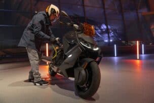 Según anuncia BMW la nueva CE 04 necesita cuatro horas y veinte minutos para alcanzar el 100% de carga en una toma doméstica. Con el Wallbox opcional y el cargador de abordo de 6,9 kW se reduce el tiempo hasta una hora y cuarenta minutos, y si necesitamos pasar del 20 al 80% se logrará en 45 minutos.