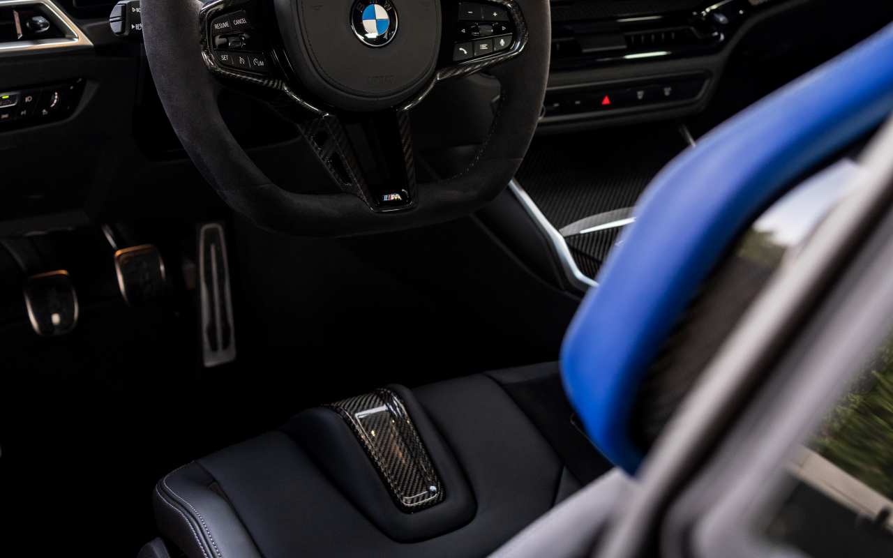 Los asientos deportivos M tapizados en cuero Vernasca negro con detalles en los colores M ofrecen un equilibrio perfecto entre confort y sujeción. Como opción, se pueden equipar los asientos M Carbon Bucket.