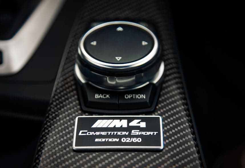 Una placa en la moldura de PRFC (fibra de carbono) del túnel central nos indica que este modelo se trata de una edición limitada, además de ir acompañado del número que identifique a este coche dentro de esta exclusiva colección. Esta placa irá acompañada de un llavero que recibirá el cliente con la misma intención, la de subrayar que se trata de un modelo exclusivo e único dentro de los coupés deportivos de la gama BMW M.