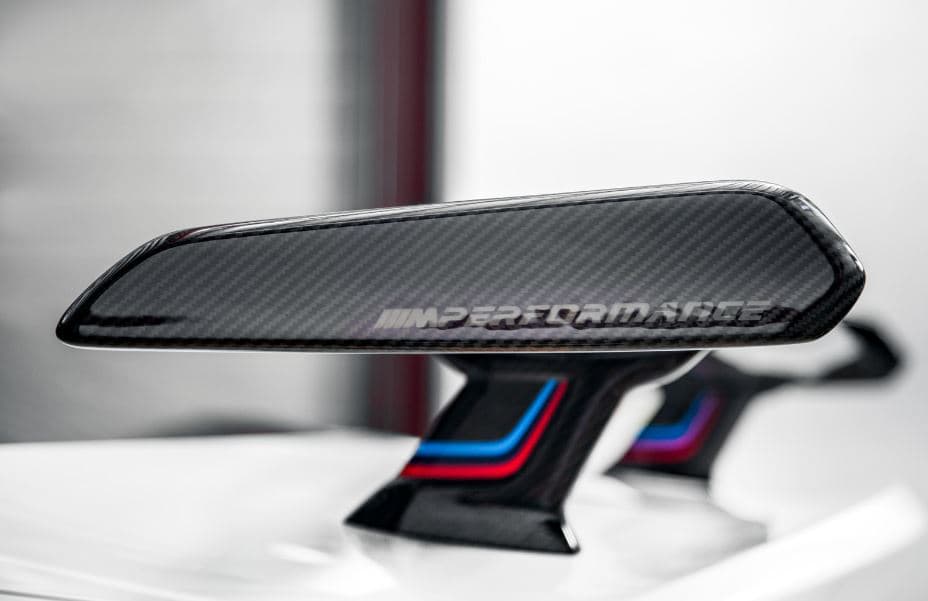 En el plano estético encontramos detalles como las carcasas de los retrovisores también en PRFC, los riñones y molduras laterales con un acabado negro de brillo intenso o lo cinturones de seguridad con una fina tribanda, bandera y seña de identidad de BMW M.