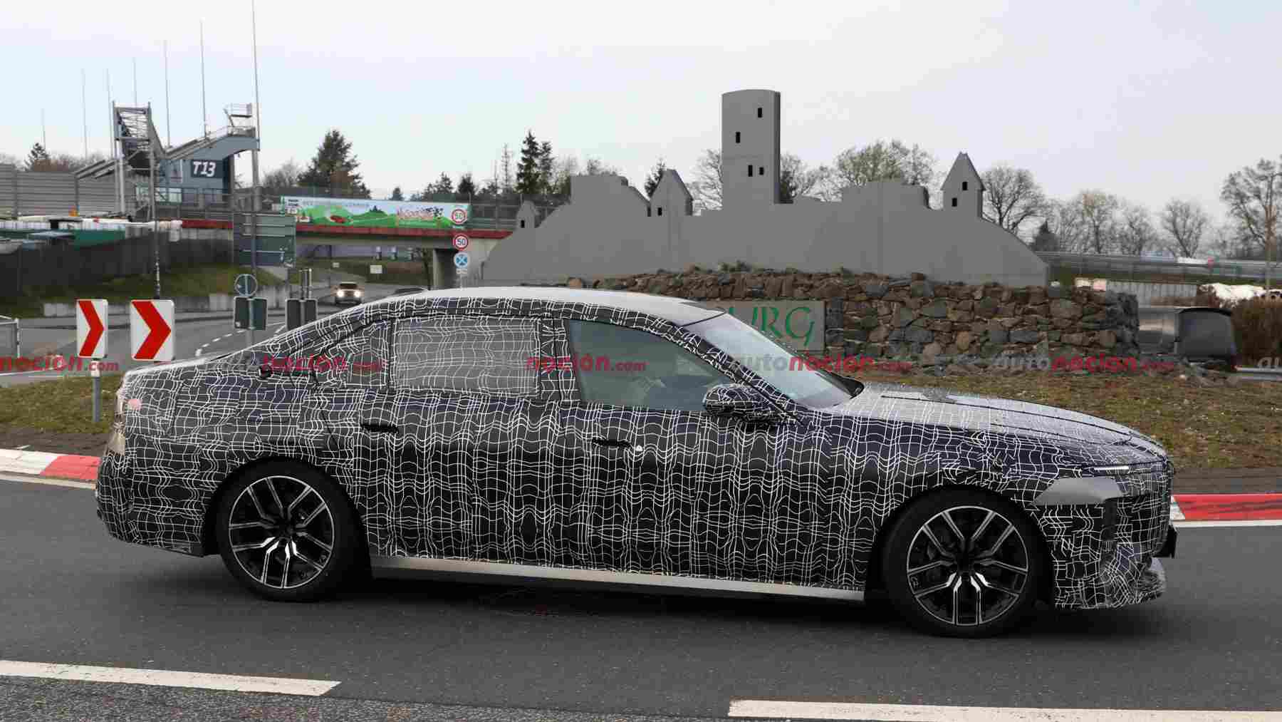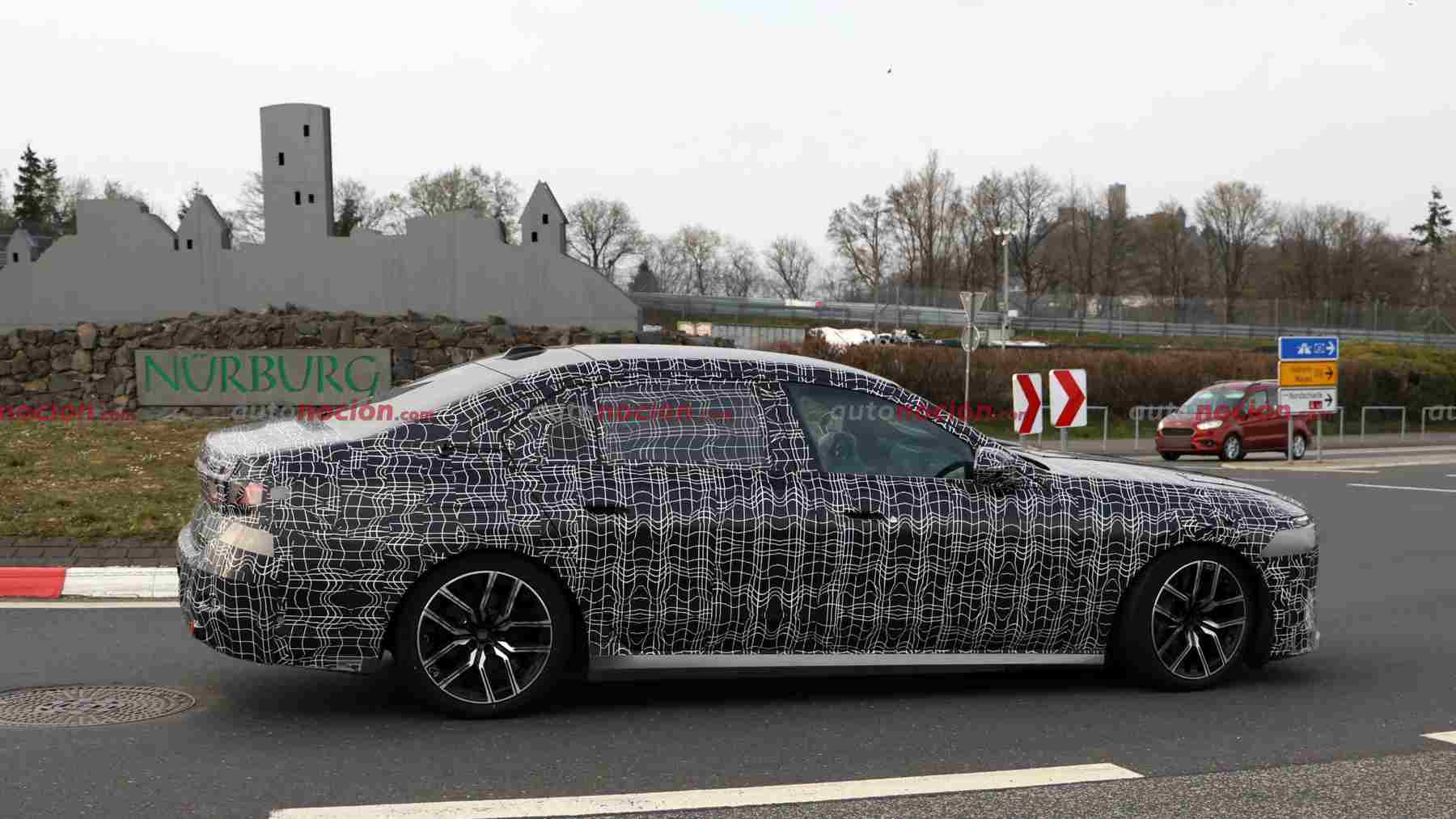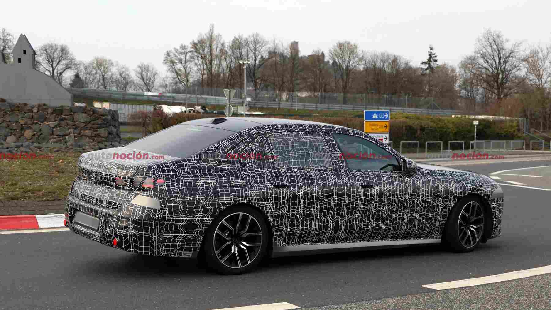 El lateral de la carrocería sería la parte más conservadora con respecto a su predecesor. De la zona posterior, esperamos cambios más leves, mantendría los pilotos alargados de LED. Y lo que para algunos puede ser un alivio: a priori en el nuevo BMW Serie 7 no habría ni rastro de la filosofía de diseño Neue Klasse. Al menos, en el exterior.