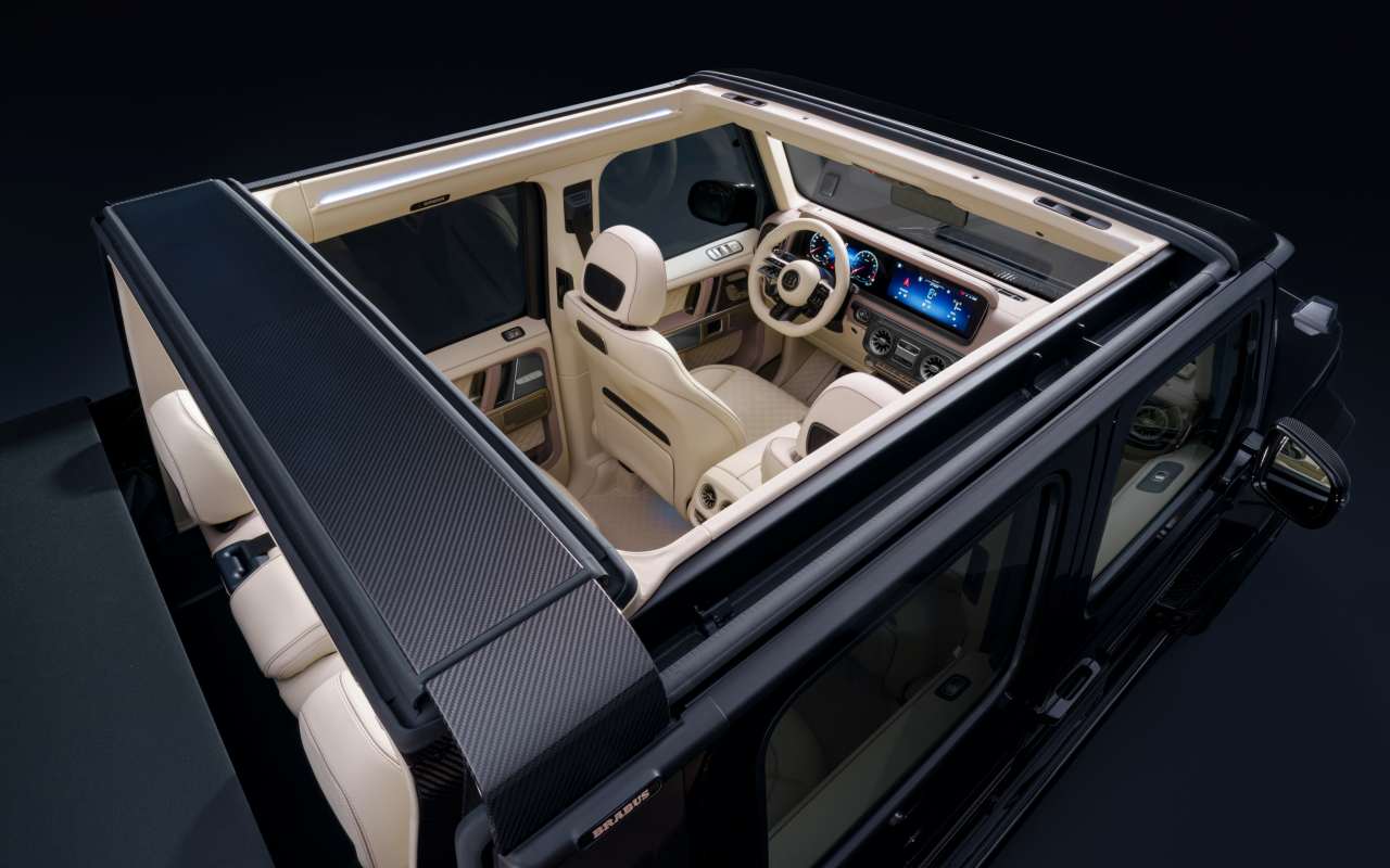 BRABUS ha logrado mantener la rigidez torsional del G 63 cerrado gracias al uso de acero de alta resistencia y más de 500 componentes desarrollados específicamente para la capota eléctrica, que se abre o cierra en 20 segundos.
