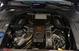 El motor de ocho cilindros y doble turbo del S 63 ha sido revisado a fondo en el taller de motores de BRABUS. La instalación de un cigüeñal especial BRABUS con recorrido más largo así como unos cilindros rectificados y unos pistones forjados agrandados han hecho que la cilindrada pase de 5.461 cc a 5912 cc.