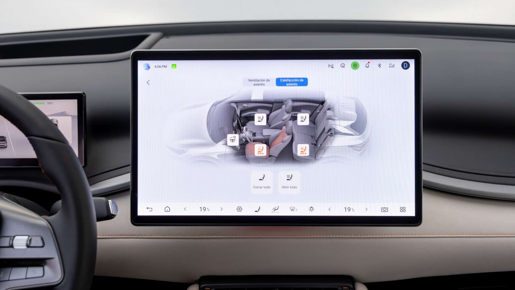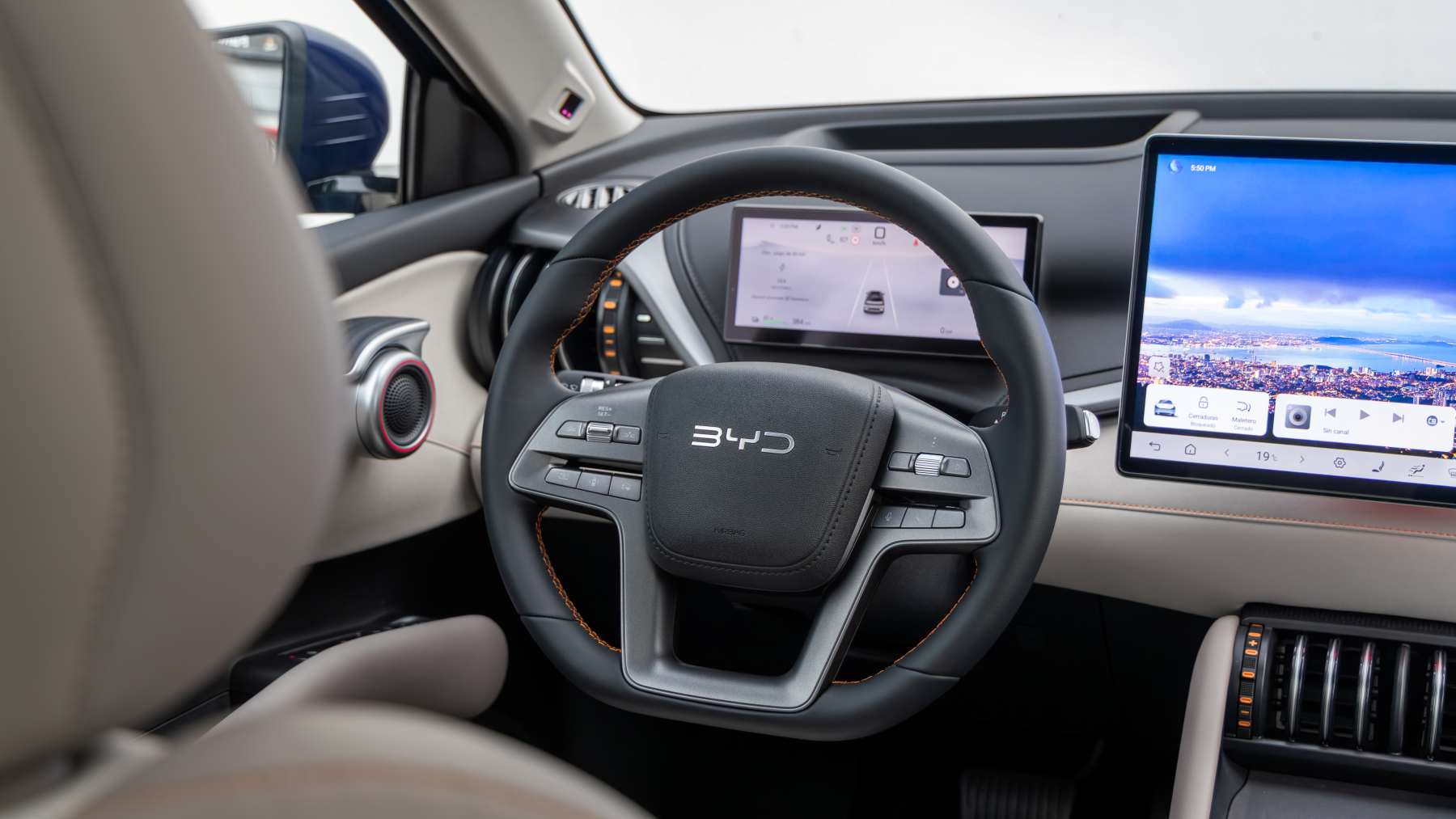 El volante está tapizado en cuero vegano y es calefactable, pero aquí aparece uno de los puntos discutibles: el tacto no está al nivel del resto del interior. Se siente algo más sintético de lo que debería.