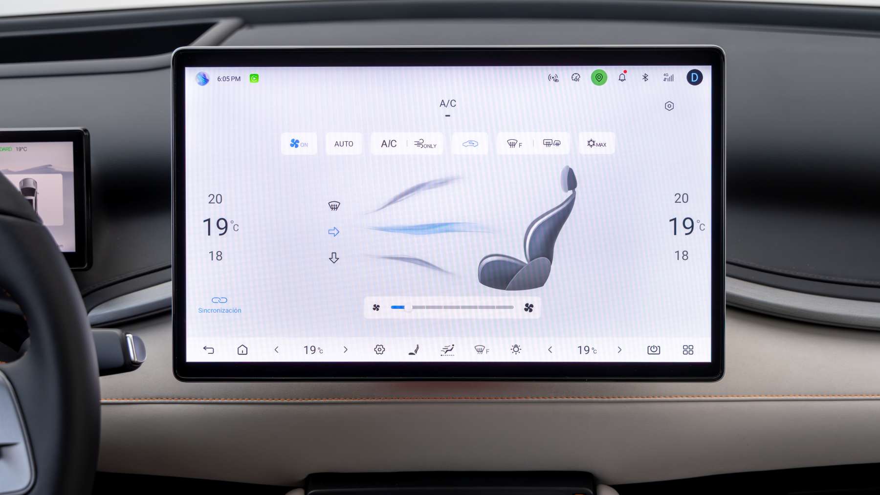 El climatizador es bizona y funciona correctamente, aunque muchas funciones pasan por la pantalla central. Y ahí está el problema, en la maldita dependencia casi total del sistema táctil para funciones básicas resta ergonomía.