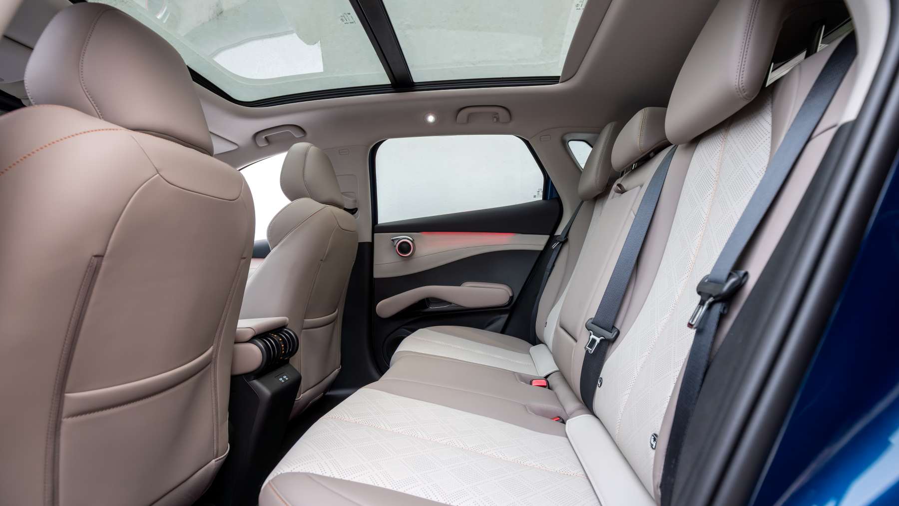 Detrás es donde realmente sorprende. La distancia entre ejes de 2.720 mm se traduce en un buen espacio para piernas. Un adulto de 1,85 m puede viajar sin que las rodillas rocen el respaldo delantero si este no está exageradamente retrasado. La altura al techo también es correcta, incluso en la versión Excellence con techo panorámico.