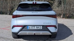 Visualmente, el cambio es más profundo de lo que parece. BYD habla del lenguaje de diseño “Dragon Face”, y en este Evo se nota una evolución clara hacia algo más europeo. El frontal es más limpio, más horizontal y con una firma luminosa LED estilizada que conecta visualmente ambos faros. La parrilla cerrada está mejor integrada y el paragolpes delantero tiene ahora entradas de aire más marcadas y con formas más geométricas. Ya no intenta ser simpático. Ahora intenta ser serio.