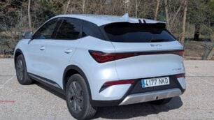 En versión Design, el Atto 3 Evo adopta tracción trasera con un motor síncrono de imanes permanentes en el eje posterior que desarrolla 313 CV (230 kW) y 380 Nm de par. El cambio de tracción delantera a trasera respecto al modelo original no es un detalle menor, esto cambia la manera en que el coche entrega la potencia.