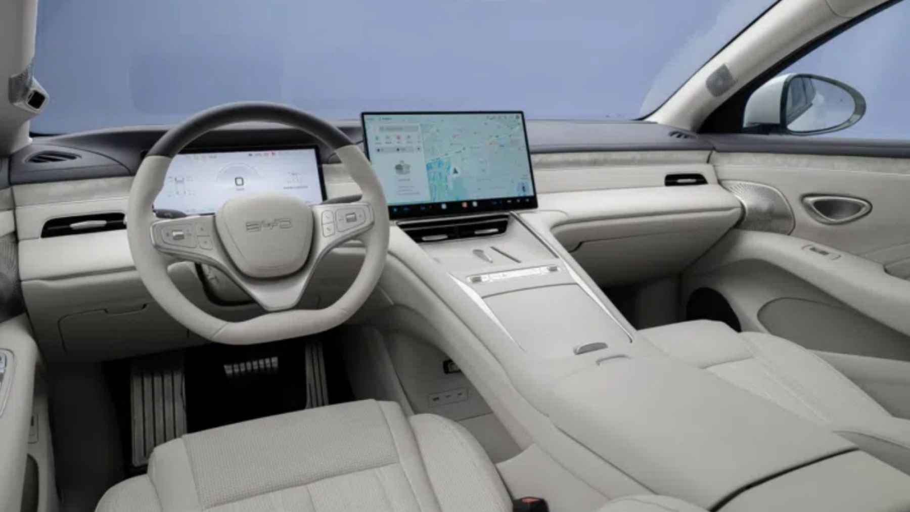 BYD intenta trasladar su lenguaje de diseño exterior al interior, con líneas suaves y una sensación más “orgánica”. Es básicamente un giro hacia algo menos frío y más habitable, sin perder ese rollo futurista que se espera en este segmento.
