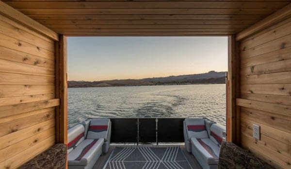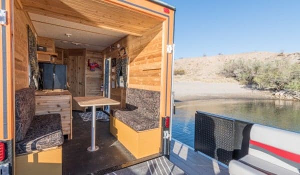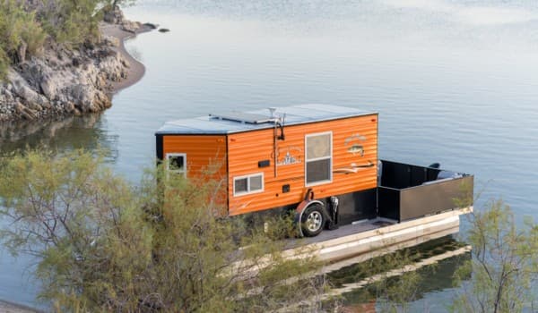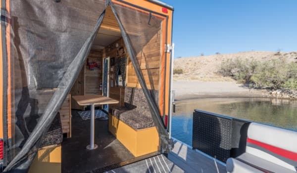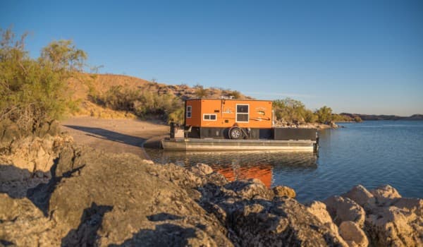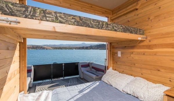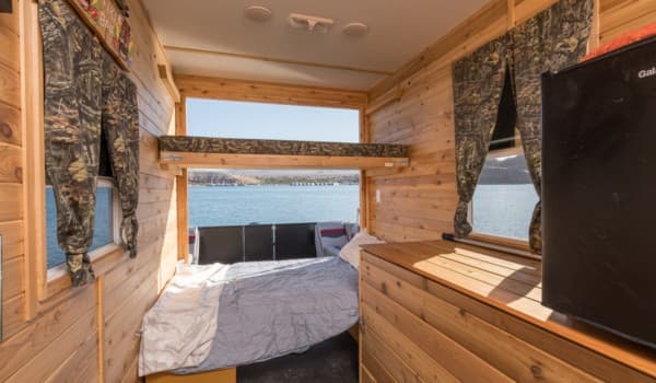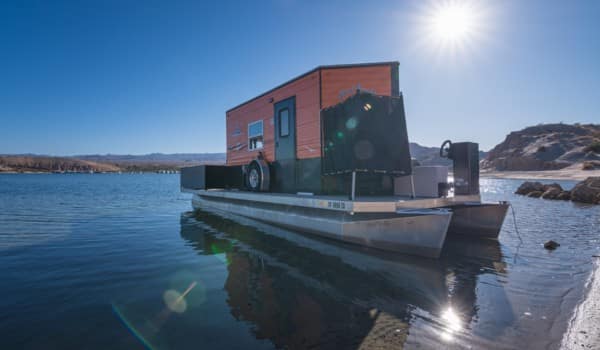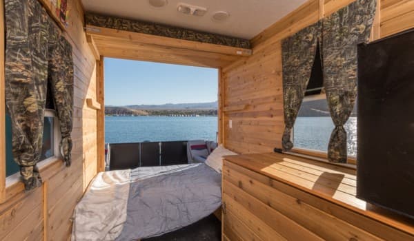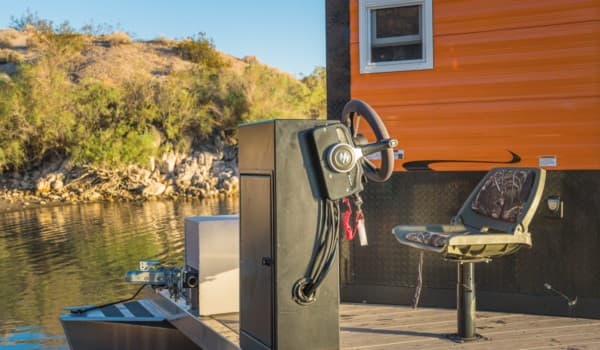Otras características interesantes de esta casa flotante son el tanque de agua dulce, el depósito de aguas grises, un sistema de sonido estéreo y un calentador de agua eléctrico. También se puede usar un radiador de propano para calentar el interior. Su precio arranca en 64.000 dólares, poco más de 60.000 euros, y está disponible en Katherine Landing, Lago Mohave, Arizona.