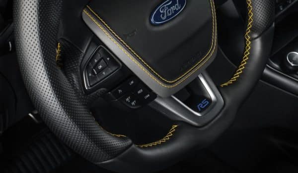 Ahora todo el interior ha sido actualizado con una elegante tapicería de cuero negro con costuras en contraste de color amarillo, así como los asientos y paneles de las puertas que reciben una «costura dinámica» para enfatizar el «estilo rally» del Focus RS. Uno de los elementos que más destacan del interior es el volante, el cual recibe un nuevo diseño más deportivo y un acabado en cuero perforado con costuras en amarillo.