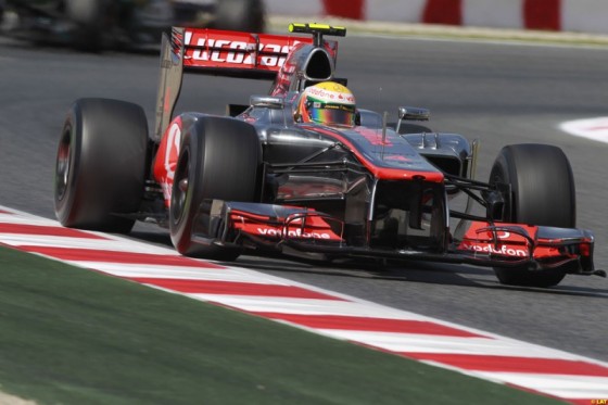 La ronda definitiva fue de infarto, poco movimiento al principio pero a falta de 3 minutos salieron todos a marcar sus tiempos. Lewis Hamilton se llevo la pole marcando un tiempo final de 1.21.707 dejando a Pastor Maldonado y a Fernando Alonso a cinco décimas. Si, no me equivoqué, Alonso tercero. Ferrari ha dado un gran salto con las evoluciones montadas en Barcelona, y junto a que parece que tienen un muy buen ritmo de carrera, podemos prever una lucha interesante en las primeras curvas.