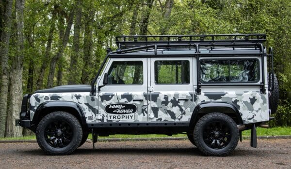 Los exclusivos Classic Defender Works V8 Trophy camuflados, que honran la herencia todoterreno de Land Rover, se crearán utilizando modelos Defender de 2012-2016, se desmontarán y reconstruirán a mano según los estándares más exigentes y mejorarán las altas especificaciones.