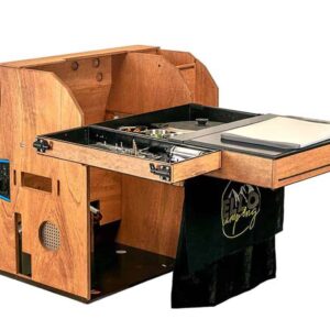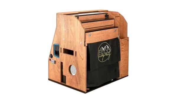 La caja, fabricada en madera de buena calidad, apenas mide 70 x 67 x 49 centímetros y pesa 90 kilos, pero en su interior incluye dos fogones de gas de 3.200 vatios, una nevera de 24 litros, un tanque de agua de 16 litros y un fregadero plegable con manguera. Todo cabe en los cajones integrados en la caja, junto con un espacio para almacenar utensilios, especias y cualquier otro elemento.