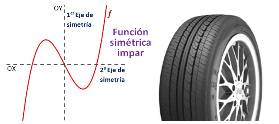 Es efectivamente un neumático que no tiene sentido obligatorio de rotación, pero no es simétrico, o si lo es, sólo lo es en uno de sus dos ejes. Por ello se llama antisimétrico o simétrico impar.