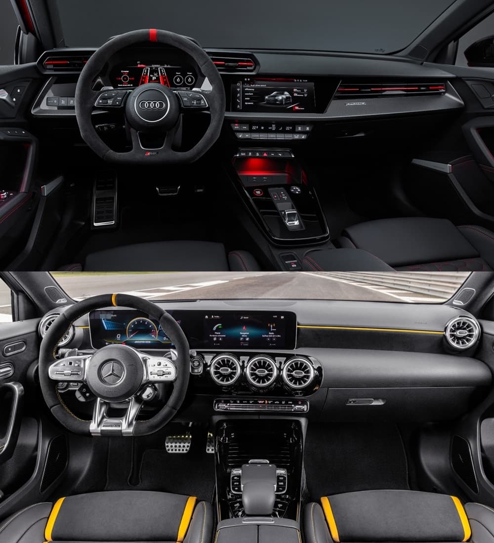 El Audi RS 3 2021 acaba de debutar a nivel internacional y no queríamos dejar pasar la oportunidad de compararlo con su principal rival, el Mercedes-AMG A 45 S 4MATIC+. Ambos son extremadamente atractivos en su exterior y cuentan con la última tecnología en el interior.