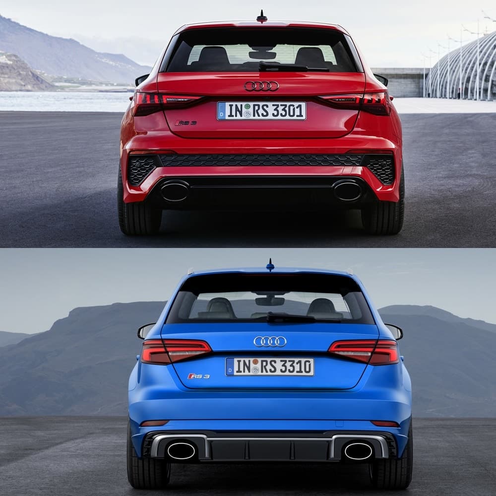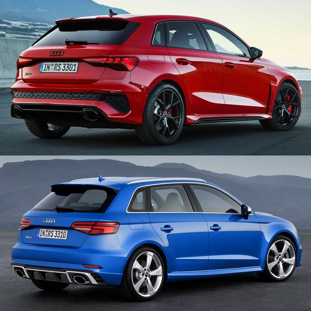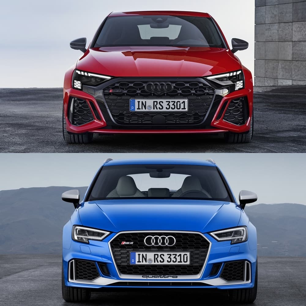 El Audi RS 3 2021 debutó ayer en versiones Sportback y Sedán con un sinfín de novedades y chucherías, por eso hoy queremos proponeros una de nuestras habituales comparativas visuales. En el frontal, son protagonistas el amplio paragolpes RS y la rediseñada parrilla Singleframe.