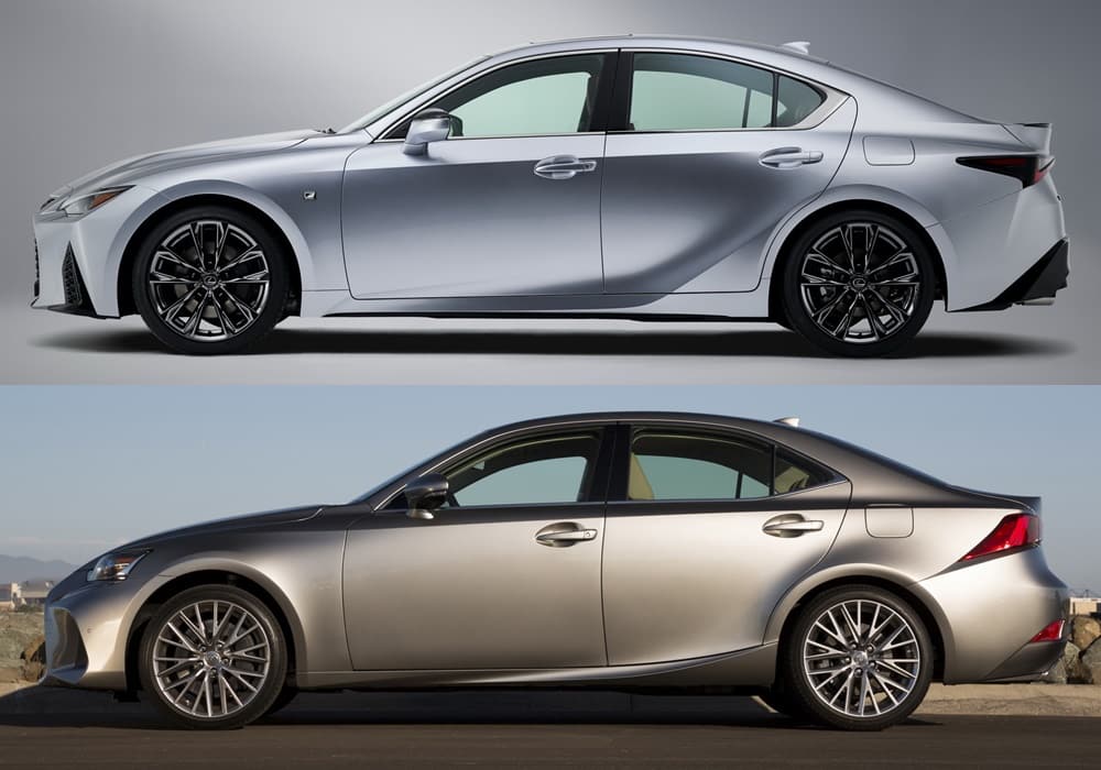 El nuevo modelo tiene unas puertas rediseñada, unas curvas más deportivas y líneas de carácter más bajas que fluyen hacia unos pasos de rueda traseros más elegantes. En la parte trasera hay un nuevo diseño y el IS cuenta con una tapa de maletero más curva, acompañada de un nuevo parachoques y unas luces traseras que, además, se encuentran unidas mediante una delgada tira iluminada que cruza toda la zaga.