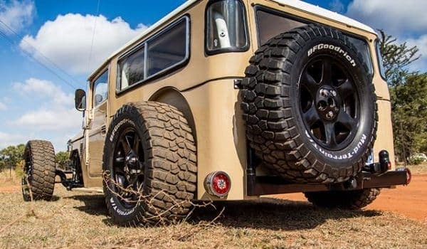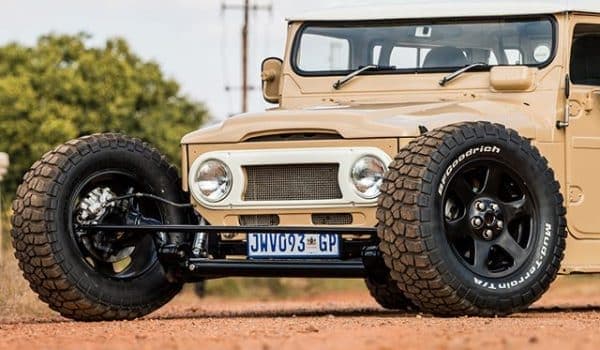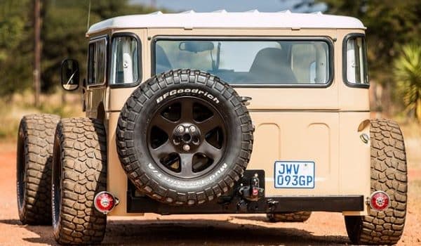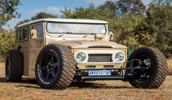 Tras 1.200 horas de trabajo, este es el resultado, un brutal 4×4 ensanchado al que no le falta una efectiva suspensión delantera, las ruedas de un Land Rover Discovery, los asientos de un Jeep Wrangler y los faros de un Volkswagen Golf MK1. Lo mismo ocurre en el interior, donde encontramos una radio de Lexus, un volante de MOMO, una palanca de cambios de B&M y una jaula de seguridad por si las moscas. El resto es todo de Toyota, o al menos eso dicen.