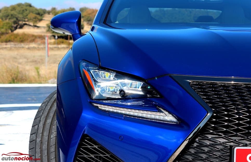 Los faros presentan en su conjunto un diseño audaz que resalta gracias a la incorporación de una tira de LED con forma de punta de flecha que conforma la luz de marcha diurna compuesta por 23 LEDs (16 LEDs para la luz de intermitencia integrada en esta misma tira). Sin lugar a dudas, este diseño le confiere al nuevo Lexus RC F una estética inconfundible tanto de día como de noche. Sabiendo la importancia que la firma lumínica tiene para las marcas en la actualidad, Lexus está haciendo que esta tira en forma de punta de flecha esté presente en todos sus nuevos modelos.
