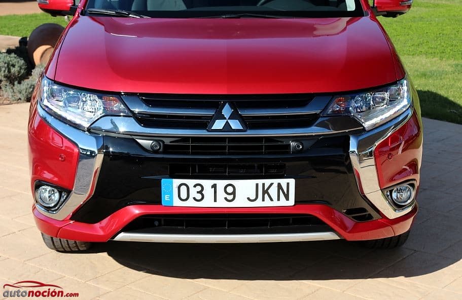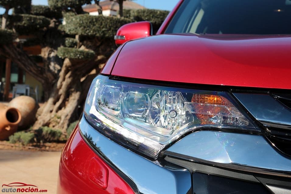 En el frontal el Outlander PHEV cuenta con una calandra cromada de nuevo diseño con el logo de la marca tridiamante en posición central. Esta calandra está custodiada por dos faros ligeramente rasgados que estrenan tecnología LED para la iluminación diurna, la de cruce y la de carretera, un paso adelante en términos de calidad y equipamiento en el fabricante que disfrutaremos de serie. Sin duda alguna, este nuevo sistema de iluminación parcial de diodos luminosos ofrece una iluminación de mucha calidad cuando circulamos de noche en la carretera. Respecto al xenón ofrece una mejor iluminación, mayor cantidad de luz, menor consumo y una mayor durabilidad. Adicionalmente, esta nueva tecnología de diodos luminosos es una de las responsables de que el consumo combinado baje un 5%.