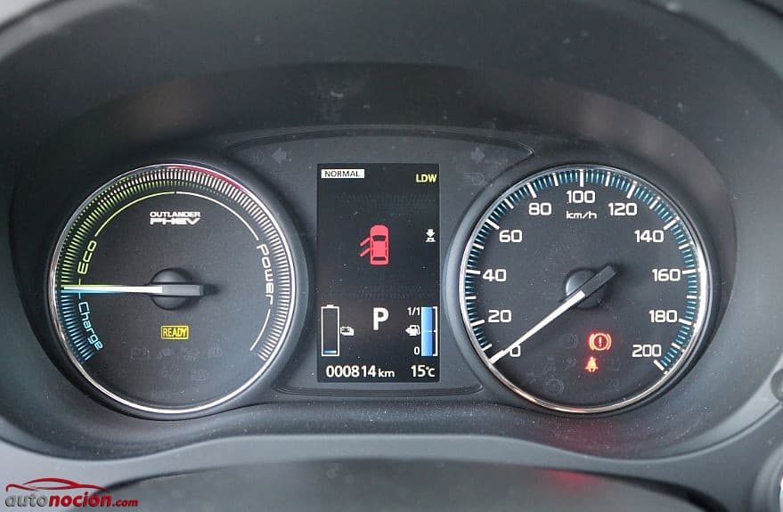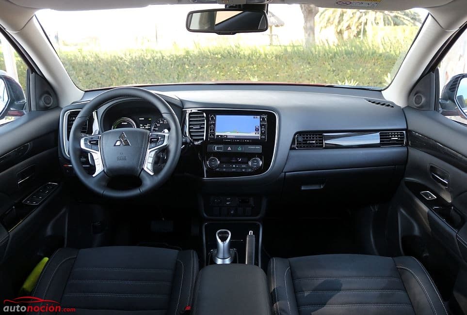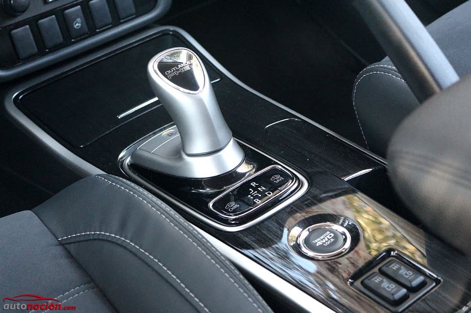 El volante se ofrece de serie con sistema multifunción (17 botones), aro forrado en cuero y levas metálicas (no solidarias) pero de una calidad superior (a diferencia de las variantes diésel, las levas del PHEV sirven para frenar el vehículo y regenerar la carga de la batería). Sin duda alguna los acabados interiores no han sido tan depurados como la nueva estética exterior. A diferencia del Outlander diésel, en el PHEV tenemos un volante más grueso, de mejor calidad y mucho más intuitivo.