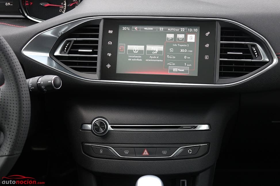 En un salpicadero acolchado podemos ver que el elemento que predomina es la pantalla táctil que ha suprimido todos o casi todos los sistemas del vehículo. El material acolchado se extiende por todos los guarnecidos interiores del nuevo Peugeot 308 dando la misma sensación de calidad a todos los ocupantes.